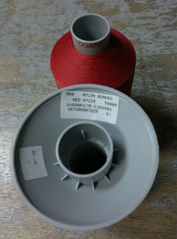 Bright red Bonded  Nylon industrial sewing thread. 5000 metres spool. Size 60 Metric TKT; 45 TEX; V46.
