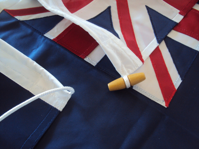 Flags made of nautical grade polyester can be safely used in harsh weather conditions. However, special care taken is the best guarantee for the flag to serve a long time. Do not expose flag to continuous windy weather; take it down during night and upon spotting first signs of tear and wear, send the flag back to us for a free repair works (P&P charges are paid by customer). Although Knitted polyester flags are machine washable at 40C, we do not recommend tumble or hot drying them. Knitted polyester flags can be ironed straight on in middle temperature.
